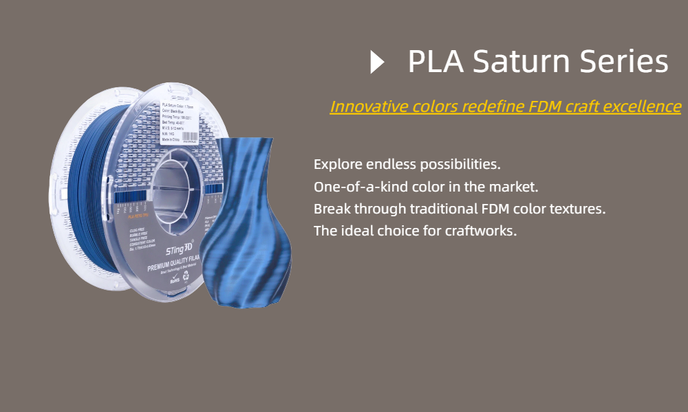 Sting3D focuses on the( R&D ) of 3d printing filament. Please click on the filament series on the right to select your filament.